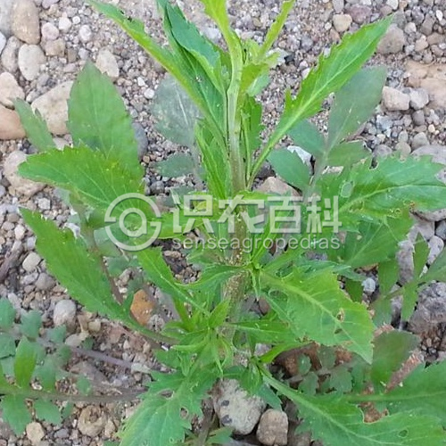 莖單一,直立,上部分枝,具柱狀腺毛。基生葉倒披針形,長(zhǎng)1-5厘米,羽狀分裂或大頭羽裂,裂片大小不等,卵形或長(zhǎng)圓形,邊緣有鋸齒,兩面有短伏毛;葉柄長(zhǎng)1-1.5厘米;莖生葉有短柄,倒披針形或線形,長(zhǎng)1.5-5厘米,寬2-10毫米,頂端急尖,基部漸狹,邊緣有尖鋸齒或全緣。總狀花序頂生;萼片橢圓形,長(zhǎng)約1毫米;花瓣白色,倒卵形,和萼片等長(zhǎng)或稍長(zhǎng);雄蕊2或4。短角果近圓形,長(zhǎng)2-3毫米,寬1-2毫米,扁平,有窄翅,頂端微缺,花柱極短;果梗長(zhǎng)2-3毫米。種子卵形,長(zhǎng)約1毫米,光滑,紅棕色,邊緣有窄翅;子葉緣倚胚根。花期4-5月,果期6-7月。