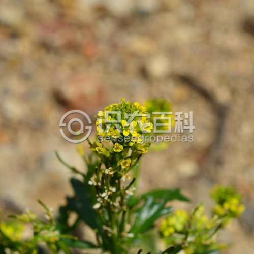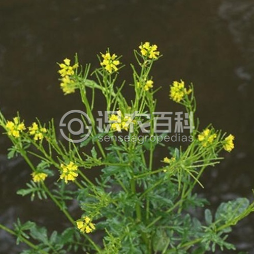 高25-60厘米,全株無毛。莖直立,下部常帶紫色,單一或具少數(shù)分枝?;~及莖下部葉大頭羽狀分裂,頂端裂片大,長2-5.5厘米,寬1-3厘米,寬橢圓形或近圓形,頂端鈍圓,基部圓形、楔形或心形,邊緣呈微波狀或具圓齒,側(cè)裂片小,1-5對,具葉柄,基部耳狀抱莖;莖上部葉較小,寬披針形或長卵形,邊緣具疏齒,無柄,基部耳狀抱莖。總狀花序頂生,初密集,花后延長;萼片橢圓狀披針形,內(nèi)輪2枚頂端隆起成兜狀,長2.5-3毫米,寬0.5-1毫米;花瓣黃色,長倒卵形,長3-4.5毫米,寬0.7-1.2毫米,基部具爪。長角果線狀四棱形,長2-3.5厘米,緊貼果軸而密集著生,果熟時稍開展,果瓣隆起,中脈顯著。種子橢圓形,長約1.5毫米,寬約0.5毫米,深褐色,表面具細網(wǎng)紋;子葉緣倚胚根?;?、果期5-8月。
