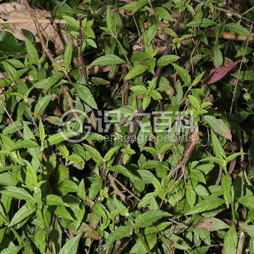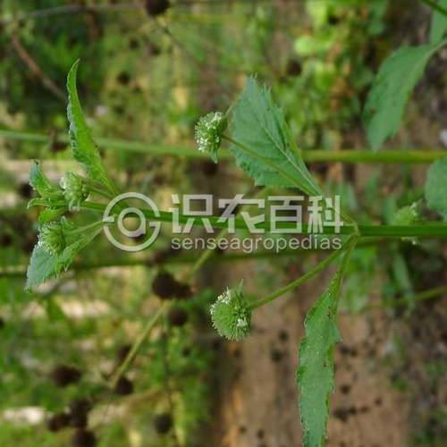 一年生、直立、粗壯草本,無香味。莖高0.5-1.5米,四稜形,具淺槽及細條紋,粗糙,沿稜上被短柔毛,綠色或紫色。葉披針形,長8-18厘米,寬1.5-4厘米,兩端漸狹,邊緣具鈍齒,紙質,上面欖綠色,被疏短硬毛,下面較淡,沿脈上被疏柔毛,余部密具腺點;葉柄長1-3.5厘米,腹平背凸,被疏柔毛。花多數,密集成一具長梗、腋生、單生的球形小頭狀花序,此花序直徑約15厘米,具苞片;總梗長5-10厘米;苞片多數,貼向,披針形或線形,長度超過花序,全緣,密被疏柔毛。花萼綠色,長約4毫米,寬約2毫米,果時管狀增大,長達1厘米,寬約3.2毫米,基部被長柔毛,其余部分被短硬毛,萼齒錐尖,長約2.2毫米,直伸。花冠乳白色,長約6毫米,外面被微柔毛,冠筒基部寬約1毫米,至喉部略寬,冠檐二唇形,上唇短,長1-1.2毫米,先端2圓裂,裂片卵形,外反,下唇長約為上唇的2.5倍,3裂,中裂片較大,凹陷,具柄,側裂片較小,三角形。雄蕊4,下傾,插生于花冠喉部。花柱先端寬大,2淺裂。花盤闊環狀。子房裂片球形,無毛。小堅果長圓形,腹面具棱,栗褐色,長約1.2毫米,寬約0.6毫米,基部具二白色著生點。