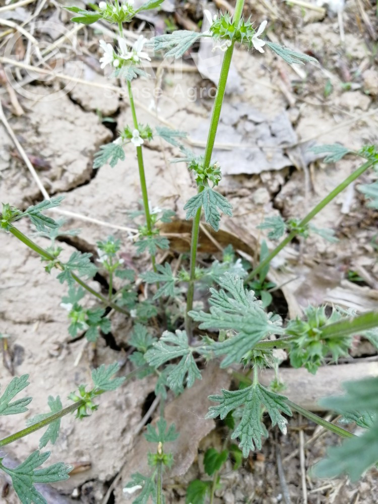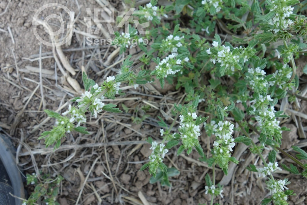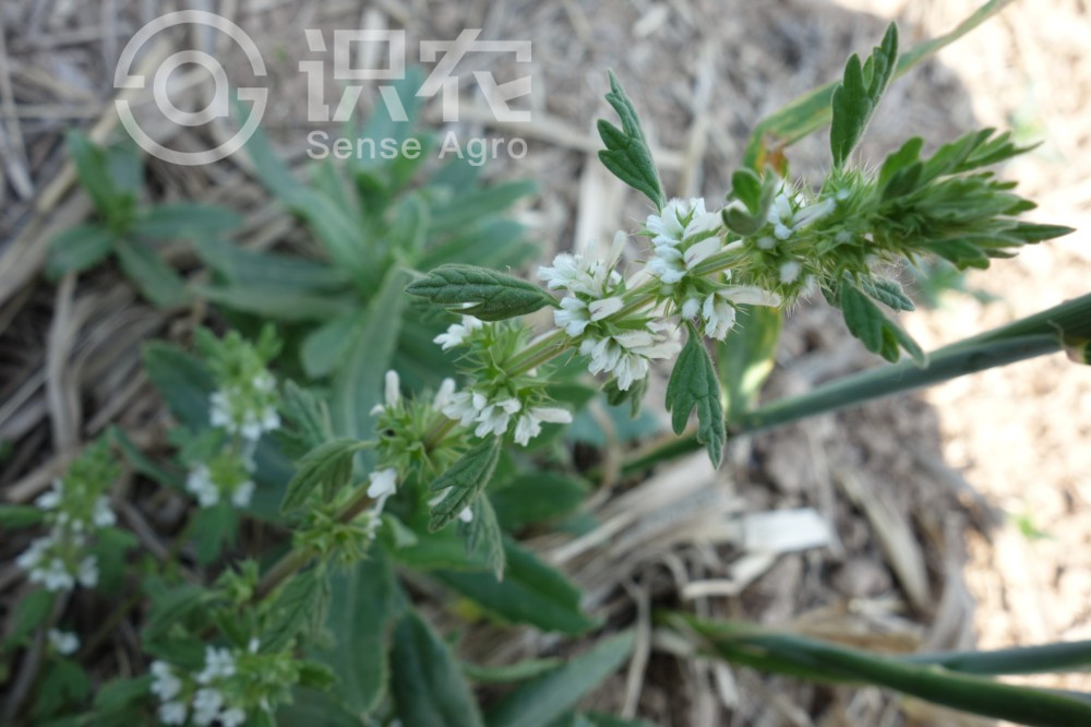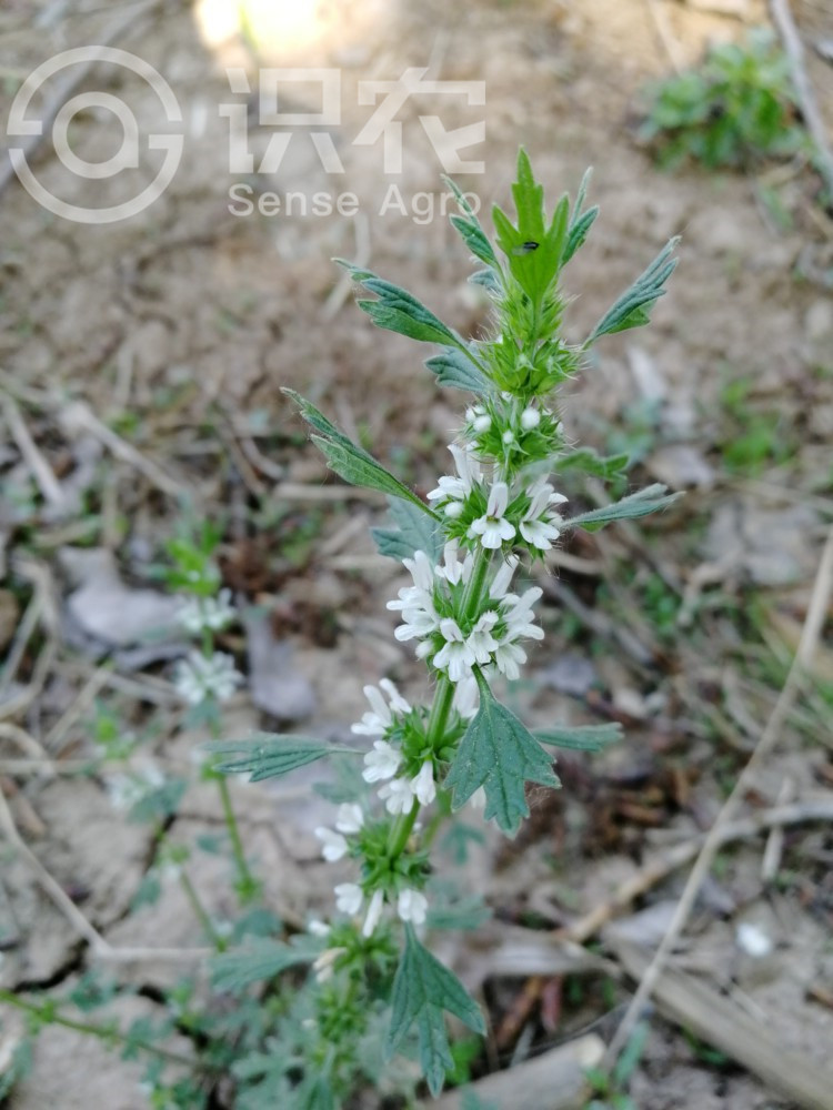 具圓錐形的主根。莖高15-35厘米,四棱形,具溝槽,帶紫紅色,密被微柔毛,常在基部分枝。葉輪廓為圓形,長寬1.5-2厘米,先端圓形,基部心形,3深裂,裂片有圓齒或長圓形犬齒,有時(shí)葉片為卵圓形,3淺裂或深裂,裂片無齒或有稀疏圓齒,通常基部越冬葉遠(yuǎn)較寬大,葉片兩面均綠色,上面疏生微柔毛,下面沿脈上被長柔毛,余部具腺點(diǎn),邊緣具纖毛,脈掌狀,3-5出;葉柄長,基生葉的長2-3厘米,上部葉的較短,通常在1厘米左右,扁平,上面微具溝槽。輪傘花序疏花,徑約1厘米,在枝條上部者較密集,在下部者較疏松;小苞片長約4毫米,稍短于萼筒,彎曲,刺狀,密被微柔毛。花萼管狀鐘形,長約4毫米,外密被微柔毛,內(nèi)面無毛,脈5,凸出,齒5,不等大,長1-1.5毫米,三角形,先端刺尖,邊緣有細(xì)纖毛,在果時(shí)明顯展開,且2齒稍大。花冠白色,稀粉紅色,稍伸出于萼筒,長約7毫米,外面被綿狀長柔毛,內(nèi)面被微柔毛,在花絲基部有短柔毛;冠筒長約5毫米,徑約1.5毫米;冠檐二唇形,上唇直伸,比下唇長,長圓形,全緣,下唇斜展,3淺裂,中裂片扁圓形,2側(cè)裂片橢圓形。雄蕊4,著生于冠筒中部稍下,不伸出,后對較短;花藥卵圓形,2室。花柱先端2淺裂。花盤平頂。小堅(jiān)果長卵形,長約1.5毫米,褐色,有鱗粃。
