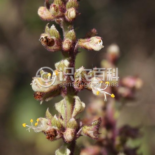 小灌木,芳香,密被柔毛狀絨毛。葉對生,卵狀矩圓形或邊緣有粗齒,輪傘花序于枝頂密集成長10-15cm的圓錐花序,苞片卵狀棱形;花萼鐘狀,5齒裂,下2齒極小,呈刺芒狀;花冠紅色或白黃色,上唇4淺裂,下唇矩圓形,群友;雄蕊4,后對花絲基部鋸齒。小堅果近球形。