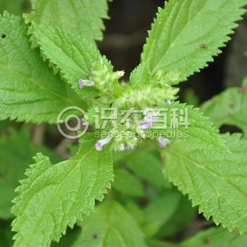多年生草本,具匍匐莖。莖不分枝或分枝,高50-80厘米,四棱形,具明顯的四槽,平滑無毛,極少于近節處有極疏的長柔毛。葉柄長0.8-1.5厘米;葉片卵圓狀長圓形至卵圓狀披針形,長5-10厘米,寬1.5-4.5厘米,分枝上者十分變小,先端急尖或短漸尖,基部心形、近心形或平截,邊緣為帶重齒的鋸齒或圓齒,除葉柄及葉下面中肋的基部偶見疏生的短柔毛外,余部均無毛。假穗狀花序生于主莖及上部分枝的頂端,主莖上者由于下部有短的側生花序因而儼如圓錐花序,長3-4.5厘米,無毛,由極密接、有時交錯而不整齊的具2花的輪傘花序組成;苞片線狀披針形;花梗短,長約1.5毫米,與苞片均無毛,極少有極疏生長柔毛。花萼鐘形,長4-4.5毫米,寬3-3.5毫米,萼筒下方稍一面臌,除齒緣稍具緣毛外,余部均無毛,10脈,尊齒5,上3齒正三角形,等大,下2齒銳三角形,與上3齒等長,直伸。花冠白色或淡紅色,長1.2-1.4厘米,外面在唇片上被鱗狀短毛,余部無毛,冠筒長為花冠的1/4,不伸出于花萼,唇片與冠筒在一條直線上,中裂片極發達,菱狀倒卵形,外傾,長幾達辱片的1/2,側裂片卵狀長圓形,先端急尖。雄蕊稍短于唇片。花柱與雄蕊等長。花盤小,盤狀,微顯波狀邊緣。子房圓球形,4裂。小堅果倒卵形,長1.2毫米,栗棕色,平滑,疏被自色波狀毛,合生面超過果長之1/2。花期7-9月。