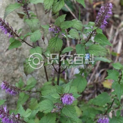一年生草本,全株被柔毛。莖直立多分枝,四棱,紫褐色。葉對生,卵形或橢圓狀披針形,,疏被小硬毛,略帶紫色,密生橙色腺點,邊緣有鈍齒。假穗狀花序頂生,偏向一側;苞片寬卵圓形,具針狀芒,有睫毛,被橙色腺點;花萼鐘狀,5齒裂,頂端具針狀芒;花冠淡紫色,二唇形,上唇形,上唇直立,下唇3裂;強雄蕊。小堅果矩圓形,棕褐色。花期7-9月。