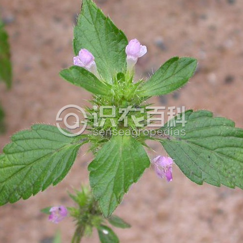 莖直立,通常高20-60厘米,有時可達1米,多少分枝,粗壯,鈍四棱形,具槽,在節上加粗但在干時則明顯收縊,此處密被多節長剛毛,節間其余部分混生下向具節長剛毛及貼生的短柔毛,在莖上部間或尚混雜腺毛。莖葉卵圓狀披針形或披針形,通常長3-8.5厘米,寬1.5-4厘米,先端銳尖或漸尖,基部漸狹至寬楔形,邊緣有規則的圓齒狀鋸齒,上面貼生具節剛毛,下而疏生微柔毛,間夾有腺點,側脈6-8對,上面不明顯,下面突出;葉柄長1-2.5厘米,腹平背凸,被短柔毛。輪傘花序腋生,多花密集;小苞片線形至披針形,長3-6毫米,基部稍膜質,先端刺尖,邊緣有剛毛。花萼管狀鐘形,連齒長約1厘米,外面有平伸的剛毛,內面被微柔毛,齒5,近等大,長約5毫米,與萼筒近等長,長三角形,先端為長刺狀。花冠白、黃或粉紫紅色,長約1.4厘米,冠筒漏斗狀,喉部增大,長8毫米,冠檐二唇形,上唇卵圓形,先端鈍,具不等的數齒,外被剛毛,下唇3裂,中裂片長圓形,寬度與側裂片近相等,約2毫米寬,先端明顯微凹,紫紋直達邊緣,基部略收縮,側裂片長圓形,全緣。雄蕊4,均延伸至上唇片之下,花絲絲狀,下部被小疏毛,花藥卵圓形,2室,二瓣橫裂,內瓣較小,具纖毛。花柱先端近相等2裂。花盤前方呈指狀增大。子房無毛,褐色。小堅果倒卵狀三棱形,褐色,有秕鱗。花期7-9月,果期9月。
