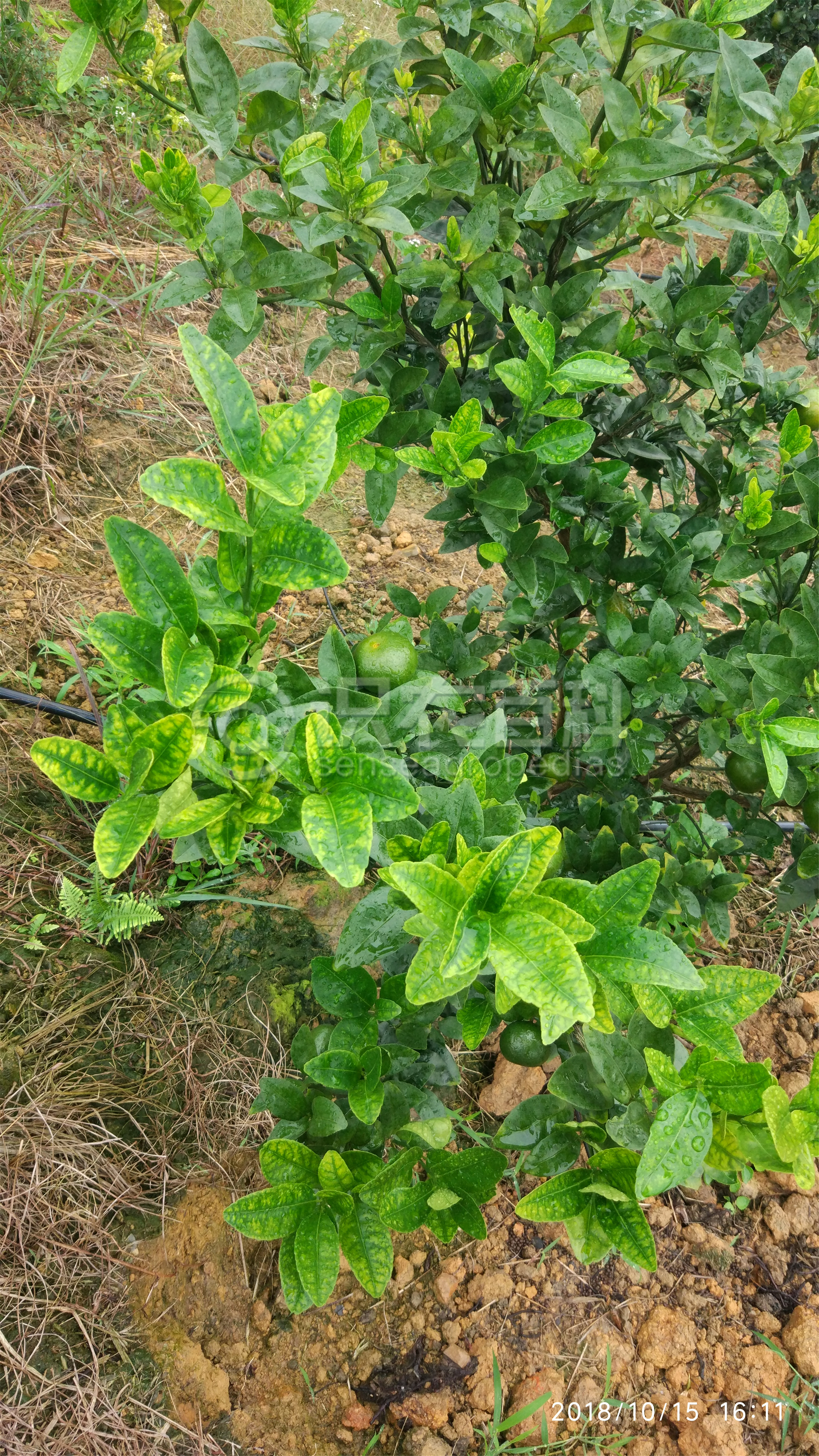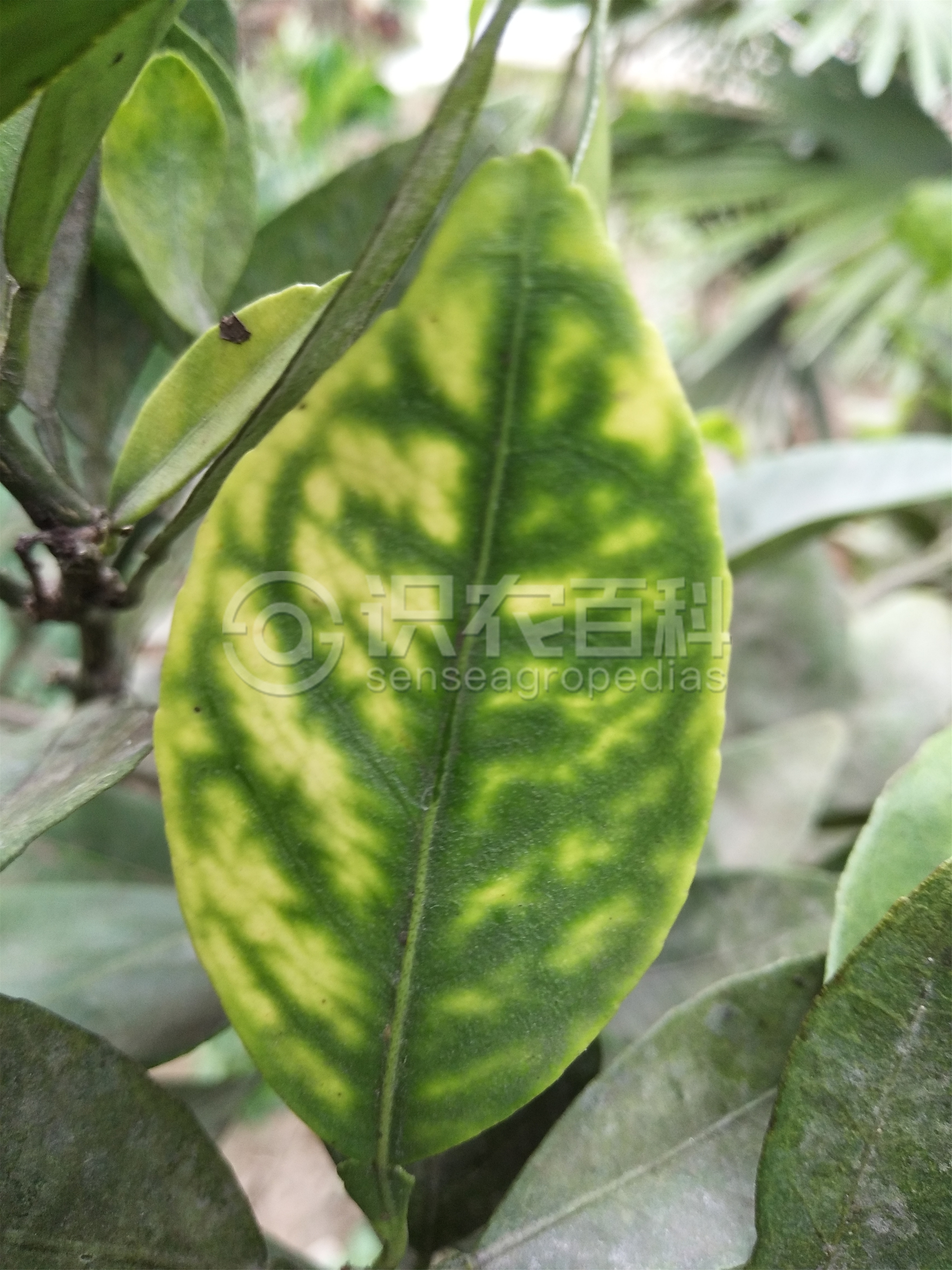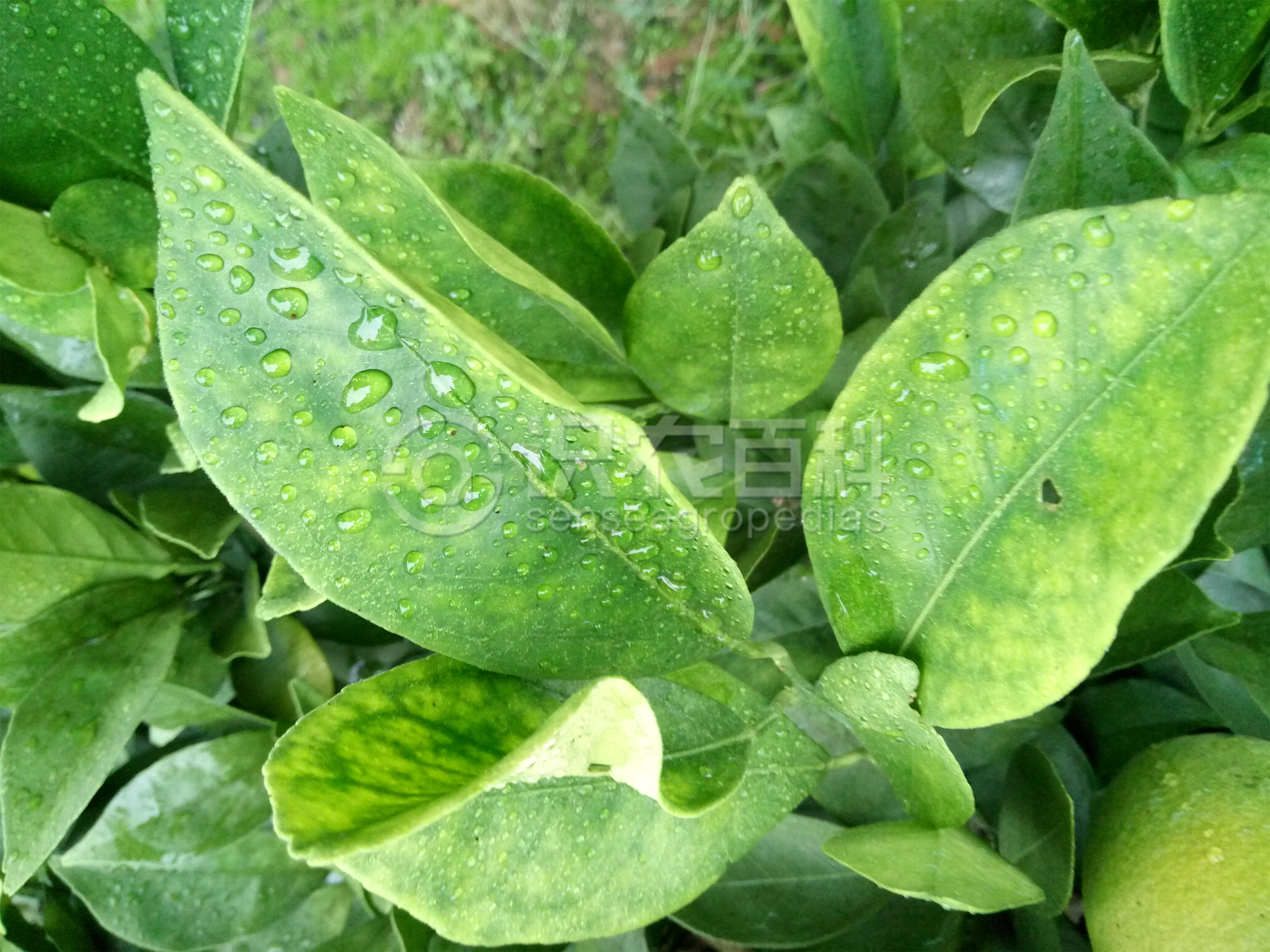 新梢葉片生長正常,中脈和側脈及其附件葉肉綠色,其余部分黃綠色,嚴重時黃斑不斷擴大;缺錳和缺鋅癥狀相似,但是缺鋅葉片的失綠區很黃,葉片狹小,缺錳的失綠區域部分帶有綠色,葉片大小和葉形基本無變化。缺錳時老葉癥狀明顯,嚴重時病葉老化脫落,產量和品質下降,新梢生長受抑制,甚至枯死。缺錳常和缺鋅、缺鐵同種癥狀同時發生。