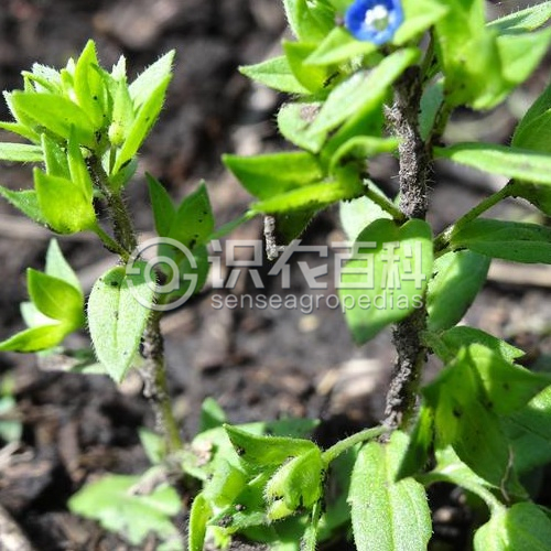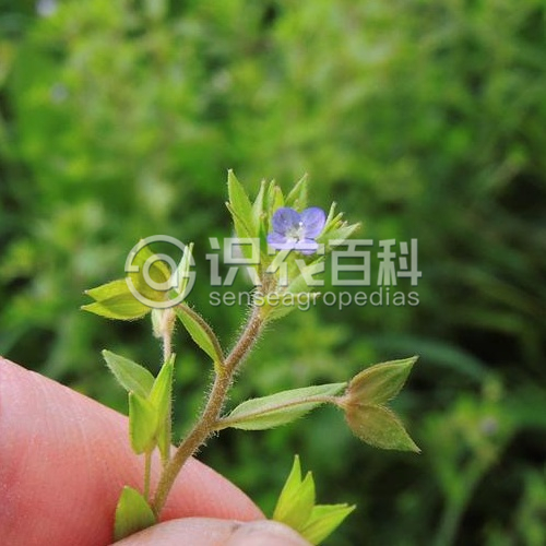 植株高5-50厘米。莖直立,通常中下部分枝,疏生白色柔毛。葉全部對(duì)生,有短柄,矩圓形至卵狀披針形,長(zhǎng)5-30毫米,寬4-13毫米,基部寬楔形至圓鈍,邊緣有疏而淺的鋸齒,花序長(zhǎng)2-40厘米,各部分疏生白色腺毛;苞片比葉小,披針形至卵狀披針形;花梗與苞片等長(zhǎng),花后伸展或多少向下彎曲;花萼側(cè)向較淺裂,裂達(dá)3/4,裂片卵形或卵狀披針形,急尖,果期長(zhǎng)達(dá)4-8毫米,明顯3脈;花冠白色、藍(lán)色或紫色,直徑3-4毫米,后方裂片圓形,其余3枚卵圓形;花絲短于花冠。蒴果長(zhǎng)3-4.5毫米,寬4-5毫米,被腺毛,幾乎裂達(dá)基部而成兩個(gè)分果,凹口叉開30-45度,裂片頂端圓鈍,宿存的花柱比凹口低得多。種子長(zhǎng)1.2-1.5毫米,有不明顯橫皺紋。花期4-8月。2n=28