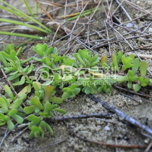 匍匐草本,節上生根,多少肉質,無毛,體態極象馬齒莧。葉無柄,矩圓狀倒披針形,長8-20毫米,寬3-6毫米,頂端圓鈍,極少有齒。花單生葉腋,花梗長0.5-3.5厘米,萼下有一對條形小苞片;萼片前后兩枚卵狀披針形,其余3枚披針形至條形,長約5毫米;花冠藍色,紫色或白色,長8-10毫米,不明顯2唇形,上唇2裂;雄蕊4枚;柱頭頭狀。蒴果長卵狀,頂端急尖,包在宿存的花萼內,4爿裂。種子橢圓狀,一端平截,黃棕色,表面具縱條棱。花期5-10月。