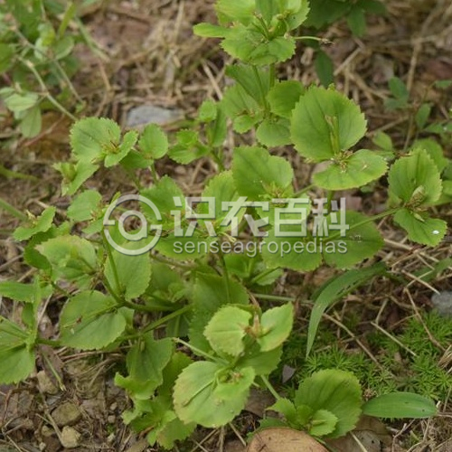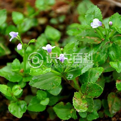 根須狀;莖直立,不分枝或有時(shí)多枝叢密,而枝傾臥后上升,莖枝多少四角形,棱上有伸展的細(xì)毛。葉無柄或有短柄,柄長約3毫米;葉片寬卵形或近圓形,有時(shí)寬過于長,長5-12毫米,寬4-8毫米,頂端圓鈍,基部寬楔形或近心形,邊緣有淺圓鋸齒或波狀齒,齒頂有小突尖,邊緣和下面中肋有極稀疏的毛,在莖枝頂端和葉腋中成亞傘形,有兩種型式,生于每一花序中央者花梗極短,或無,系閉花受精,先期結(jié)實(shí),生于花序外方之一對或兩對則為長梗,花期較晚甚久,在短梗花種子成熟時(shí)才開放,常有敗育現(xiàn)象,僅在只有長梗花的植株中看到成熟之,梗長可達(dá)2厘米,但不同的植株情況僅具一種長梗或短梗,而有的植株則長梗和短梗均有之;無小苞片;萼長約3毫米,齒5,卵形或披針狀卵形,結(jié)合到中部,稀有1/3結(jié)合,但亦有2/3結(jié)合者;花冠紫色,少有藍(lán)色或白色,長約7毫米,上唇直立,卵形,下唇開展,3裂;雄蕊4,全育,前方一對花絲基部有短小的附屬物。蒴果長橢圓形,頂端漸尖,比宿萼長約2倍;種子棕褐色。花期7-9月,果期8-11月。