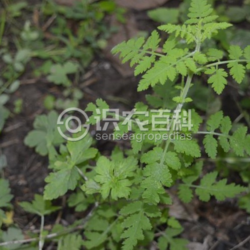 一年生草本,高可達100厘米,但有時高僅5厘米即開花,植體被多細胞腺毛。莖直立或彎曲而后上升,通常多分枝。葉具長5-12毫米邊緣有狹翅之柄,葉片長三角狀卵形,長15-55毫米,寬8-30毫米,近基部的羽狀全裂,向上則為羽狀深裂;小裂片長卵形或卵圓形,多少歪斜,邊緣具重鋸齒或深裂,長4-10毫米,寬2-5毫米。花具長2-7毫米之梗,萼長4-10毫米,萼齒5枚,葉狀,披針形,長2-6毫米,寬1-3毫米,羽狀淺裂至深裂,裂齒先端銳尖;花冠紫紅色至淡紫紅色,長8-25毫米,外面被柔毛;上唇裂片三角狀卵形,下唇裂片先端圓鈍;花絲基部疏被長柔毛。蒴果卵珠形,長6-10毫米。種子卵圓形,扁平,長約1.2毫米。花果期6-10月。