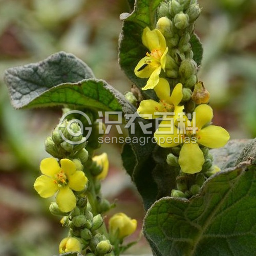 二年生草本,高達1.5米,全株被密而厚的淺灰黃色星狀毛。基生葉和下部的莖生葉倒披針狀矩圓形,基部漸狹成短柄狀,長達15厘米,寬達6厘米,邊緣具淺圓齒,上部莖生葉逐漸縮小而漸變為矩圓形至卵狀矩圓形,基部下延成狹翅。穗狀花序圓柱狀,長達30厘米,直徑達2厘米,結果時還可伸長和變粗,花密集,數朵簇生在一起(至少下部如此),花梗很短;花萼長約7毫米,裂片披針形;花冠黃色,直徑1-2厘米;雄蕊5,后方3枚的花絲有毛,前方二枚的花絲無毛,花藥基部多少下延而成個字形。蒴果卵形,約與宿存的花萼等長。花期6-8月,果期7-10月。