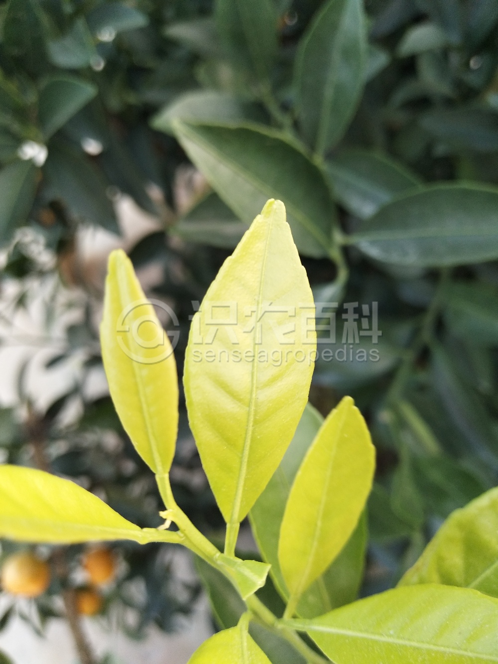 柑橘缺硫時,新梢嫩葉葉片黃化、變小,病葉提前脫落,而老葉仍保持綠色,形成明顯的對比。通常患病葉的主脈較其他部位稍黃,且易脫落,抽生的新梢纖細,多呈叢生狀。