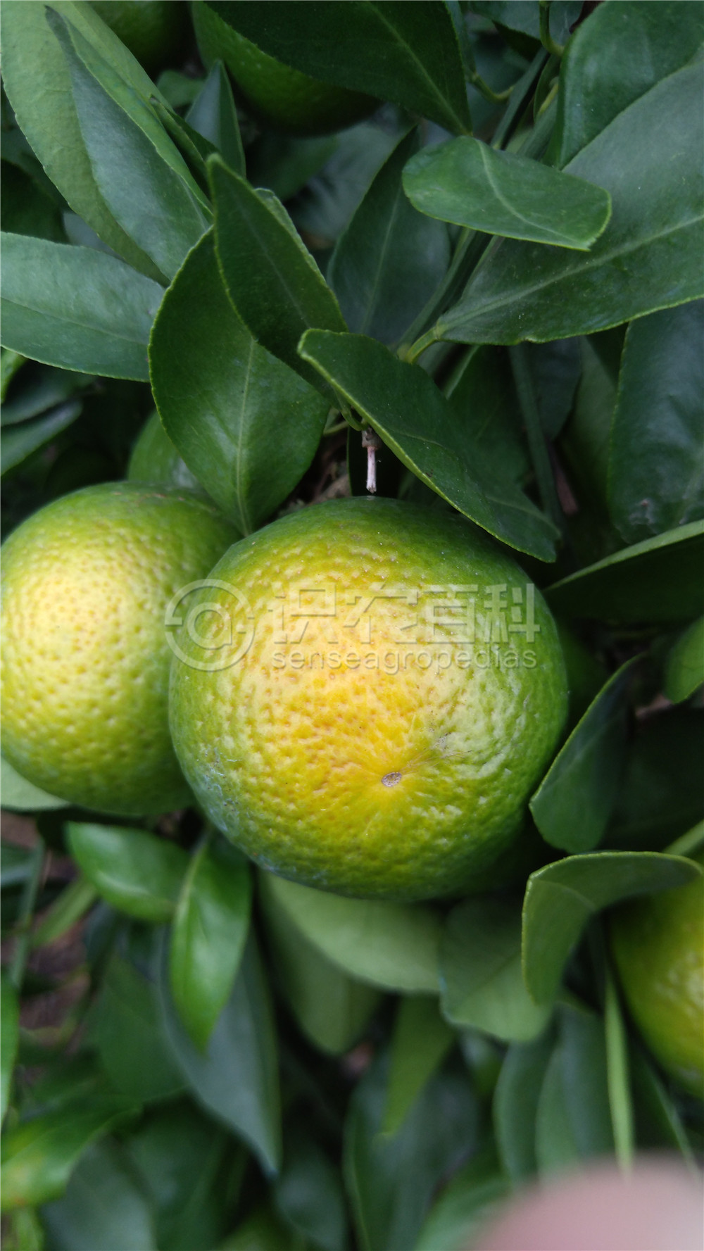 柑橘日灼在全國(guó)柑橘產(chǎn)區(qū)均有發(fā)生,以寬皮柑橘類較多,造成果實(shí)不能正常發(fā)育膨大,果實(shí)變形,品質(zhì)低劣。發(fā)生初期,果實(shí)向陽(yáng)部位出現(xiàn)蠟黃色斑,多為圓形,后表皮較大的油胞破裂,呈點(diǎn)分布,隨日灼程度加重,逐漸擴(kuò)大連成片,輕者產(chǎn)生黃褐色硬斑,如遇連續(xù)陰雨天氣,日灼輕的病果表皮能產(chǎn)生愈傷組織,基本上可恢復(fù)正常生長(zhǎng)。中后期,日灼果實(shí)出現(xiàn)近圓形下陷的枯死干疤,呈深褐色凹斑,病部果皮停止生長(zhǎng)且粗糙硬化,果實(shí)畸形。傷及果肉時(shí),囊瓣汁胞干縮、粒化。