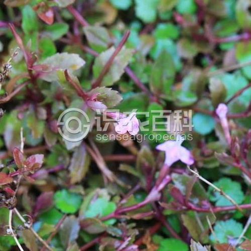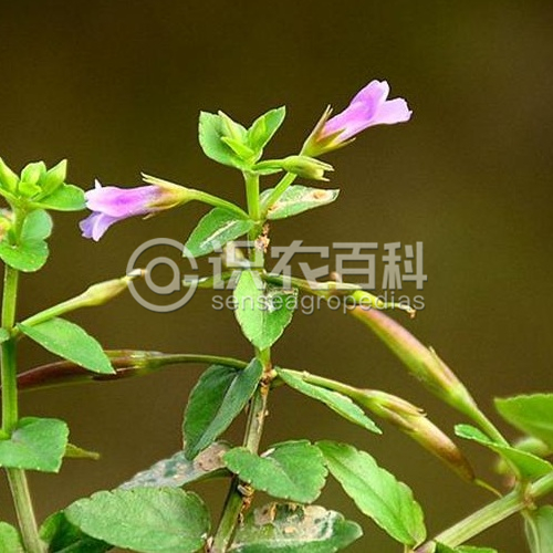 一年生草本,長(zhǎng)10-40厘米,根須狀;莖始簡(jiǎn)單,不久即分枝,下部匍匐長(zhǎng)蔓,節(jié)上生根,并有根狀莖,有條紋,無(wú)毛。葉僅下部者有短柄;葉片三角狀卵形、卵形或矩圓形,長(zhǎng)4-20毫米,寬7-12毫米,頂端圓鈍或急尖,基部截形或近心形,邊緣有不明顯的淺圓齒,側(cè)脈3-4對(duì),約以45度角伸展,上下兩面均無(wú)毛。花單生于葉腋,花梗長(zhǎng)6-10毫米,在果中達(dá)2厘米,無(wú)毛,萼長(zhǎng)約5毫米,僅基部聯(lián)合,齒5,狹披針形,無(wú)毛;花冠白色或淡紫色,長(zhǎng)8-12毫米,上唇直立,卵形,2淺裂,下唇開(kāi)展,3裂,裂片近相等,比上唇稍長(zhǎng);雄蕊4,全育,前面2枚的花絲在頸部有短棒狀附屬物;柱頭2裂。蒴果條狀披針形,比萼長(zhǎng)約2倍,室間2裂;種子卵圓形,有疣狀突起。花期4-9月,果期6-11月。