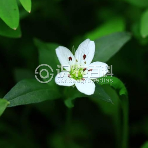 高15-20厘米。塊根長紡錘形,白色,稍帶灰黃。莖直立,單生,被2列短毛。莖下部葉常1-2對,葉片倒披針形,頂端鈍尖,基部漸狹呈長柄狀,上部葉2-3對,葉片寬卵形或菱狀卵形,長3-6厘米,寬2-17 (-20) 毫米,頂端漸尖,基部漸狹,上面無毛,下面沿脈疏生柔毛。開花受精花1-3朵,腋生或呈聚傘花序;花梗長1-2厘米,有時長達4厘米,被短柔毛;萼片5,狹披針形,長約5毫米,頂端漸尖,外面及邊緣疏生柔毛;花瓣5,白色,長圓形或倒卵形,長7-8毫米,頂端2淺裂;雄蕊10,短于花瓣;子房卵形,花柱3,微長于雄蕊;柱頭頭狀。閉花受精花具短梗;萼片疏生多細胞毛。蒴果寬卵形,含少數種子,頂端不裂或3瓣裂;種子褐色,扁圓形,長約1.5毫米,具疣狀凸起。花期4-7月,果期7-8月。