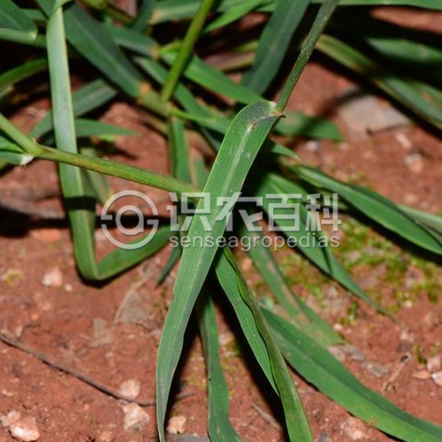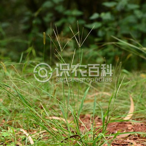 稈單生或少數叢生,直立,高60-100厘米,徑約2毫米。葉鞘下部者長于而上部者短于其節間;葉舌長1-2毫米;葉片線狀披針形,長10-30厘米,寬6-10毫米,頂端長漸尖,基部圓形,上面生疣基長柔毛。總狀花序3-6枚,長10-20厘米,排列于較短的主軸上成指狀;主軸及花序以下部分具長柔毛;穗軸寬約1毫米,中肋白色,具翼,邊緣糙澀;小穗柄長者約2毫米,粗糙,上部具糙毛,漸向頂端毛愈增長;第一穎不存在;第二穎具3脈,長為小穗的2/3,邊緣及脈間具圓頭狀棒毛;第一外稃具5脈,除主脈兩側的脈間無毛外,均被圓頭狀棒毛;第二外稃等長于小穗,成熟后黑褐色。花藥長約0.8毫米。花果期6-9月。