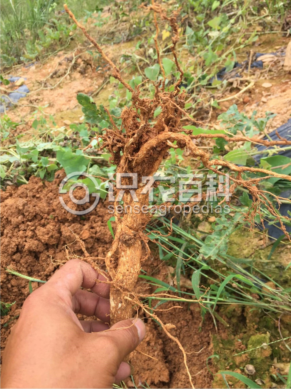 (2)剪除受害根群:深挖病樹根系附近土壤,挖出受根結線蟲為害的根系,剪掉有根瘤、根結的須根團,保留無根瘤、根結的健壯根和水平根及較粗大的根。覆土時盡量不要用原來的土壤。