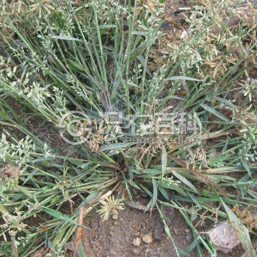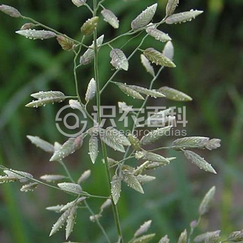 稈粗壯,高30-90cm,徑3-5mm,直立叢生,基部常膝曲,具3-5節,節下有一明顯的腺體。葉鞘疏松裹莖,脈上有腺體,鞘口具長柔毛;葉舌為1圈成束的短毛,長約0.5mm;葉片線形扁平,伸展,長6-20cm,寬2-6mm,無毛,葉脈上與葉緣均有腺體。小穗長圓形或尖塔形,長5-20cm,分枝粗壯,單生,上舉,腋間具柔毛,小枝和小穗柄上均有腺體;小穗長圓形或卵狀長圓形,墨綠色帶淡綠色或黃褐色,扁壓并彎曲,長5-20mm;寬2-3mm,有10-40朵小花,小穗除單生外,常密集簇生;穎近等長,長約2mm,穎具1脈或第2穎具3脈,脊上均有腺體;外稃廣卵形,先端鈍,第1外稃長約2.5mm,寬約1mm,側脈明顯,主脈有腺體,暗綠色而有光澤,內稃宿序,稍短于外稃,脊上具短纖毛;雄蕊3,花藥長0.5mm。穎果近圓形,徑約0.7mm。花、果期7-10月。