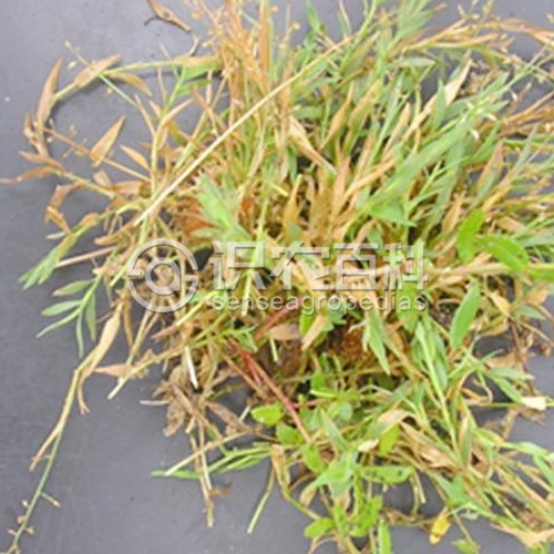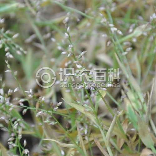 須根細弱。稈纖細,基部有時伏臥地面,并于節處生根,高10-15厘米。葉鞘無毛或上部邊緣具微毛,松弛裹莖,無葉舌;葉片柔軟,披針形,長1-3厘米,寬2-5毫米,無毛,或沿脈上具短刺毛。圓錐花序窄狹,長3-8厘米,寬5-10毫米,小穗3-7枚著生于穗軸和縮短的分枝上;小穗長2-3毫米,淡綠色或微帶紫色;穎草質,具膜質的邊緣,第一穎長約1.2毫米,具1-3(5)脈,第二穎長約1.5毫米,具5-7脈;外稃紙質,長2.5-3毫米,內稃與外稃等長,背部有一凹槽;雄蕊3枚,花藥長約0.3毫米;花柱2,自子房頂端分離;第一小花兩性,可育;第二小花通常為雌性,較第一小花略小,具長約0.7毫米的小花柄。穎果棕色,卵狀橢圓形,長約1.2毫米。花果期9-12月。