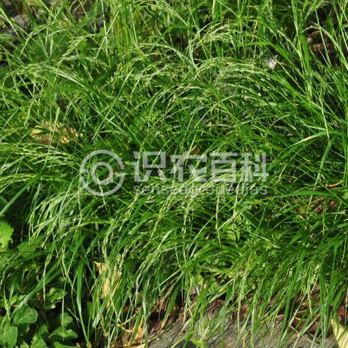 有細(xì)短根莖。稈較細(xì)弱,平滑無(wú)毛,高30-80厘米,具2-3節(jié)。葉鞘光滑或最基部有毛茸,常短于節(jié)間;葉舌干膜質(zhì),長(zhǎng)0.5-1毫米;、葉片扁平,光滑或上面微糙澀,長(zhǎng)10-30厘米,寬約5毫米,基部具耳狀突起;葉橫切面具維管束15-23,厚壁組織束狀排列,無(wú)泡狀細(xì)胞。圓錐花序疏松柔軟,下垂,長(zhǎng)10-20厘米,分枝基部孿生,上部常單一,邊緣粗糙,長(zhǎng)5-10厘米,基部主枝長(zhǎng)達(dá)15厘米,中部以下裸露,其上著生小枝與小穗;小穗軸微粗糙,節(jié)間長(zhǎng)約0.8毫米;小穗淡綠色,長(zhǎng)7-9毫米,含3-5小花;穎片卵圓形,背部平滑,邊緣膜質(zhì),頂端尖或稍鈍;第一外秤長(zhǎng)6-7毫米;內(nèi)稃近等長(zhǎng)于外稃,脊平滑,頂端尖;花藥長(zhǎng)約1毫米;子房頂端具短毛。花果期4-7月。