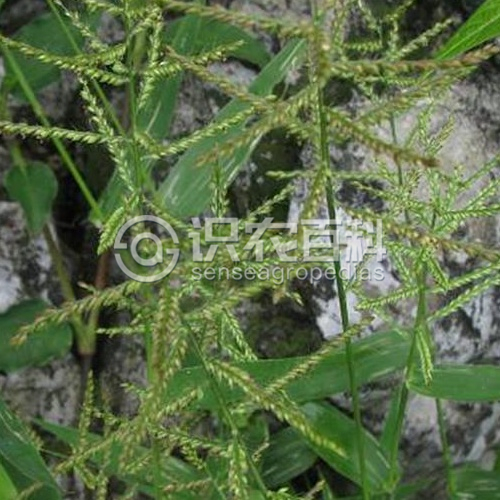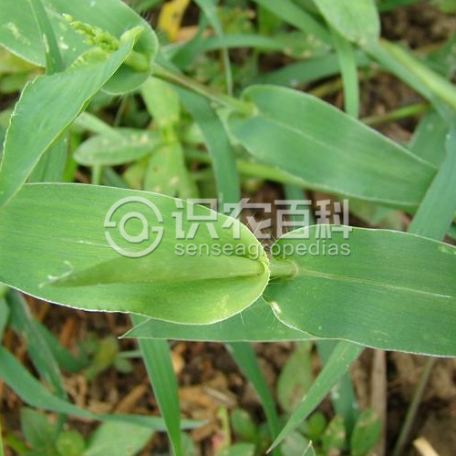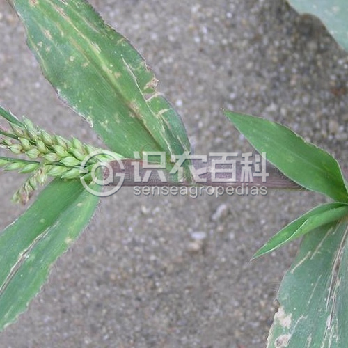 稈纖細,下部橫臥地面,節處生根,向上斜升,高15-50厘米。葉鞘短于節間,無毛,邊緣一側密被纖毛;葉舌極短小,具長約1毫米的纖毛;葉片卵狀披針形,長2-6厘米,寬3-12毫米,無毛或疏生短硬毛,基部疏被疣基毛,邊緣粗糙并常呈波狀皺折。圓錐花序由3-6枚總狀花序組成;總狀花序長0.5-4厘米;主軸具疣毛,棱邊粗糙;小穗卵狀橢圓形,長2-2.5毫米,通常無毛,孿生,一具長柄,一具短柄,柄長疏生白色長刺毛;第一穎短小,長約0.5毫米,先端鈍,截平或中間凹,脈不明顯;第二穎與小穗等長,具7-9脈;第一外稃與第二穎同形同質,具5脈,內稃膜質;第二外稃橢圓形,長約1.8-2毫米,具橫皺紋,頂端具微小尖頭,邊緣稍內卷,包著同質的內稃;鱗被2,膜質,折疊,具細脈。