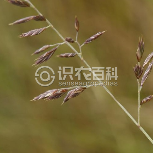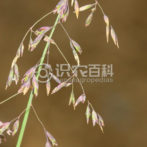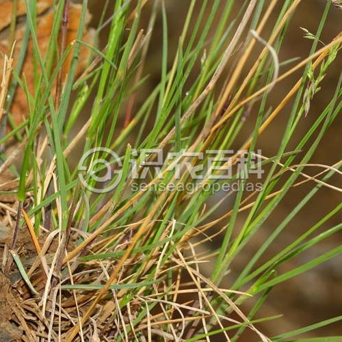 多年生,密叢型禾草。稈高40-60厘米,徑約2毫米,具2節,頂節位于下部1/3處。葉鞘平滑無毛,聚集稈基成跨復狀,頂生者長10-14厘米,下部2/3閉合;葉舌質厚,長0.2-1毫米;葉片對折或內卷,質硬,下面微粗糙,莖生者長3-8厘米,短于其葉鞘,寬1-2 (-3)毫米,蘗生者長約15厘米。圓錐花序開展,長8-12厘米;分枝孿生或單生,含2-3小花;穎質較厚,先端尖或漸尖,脊上微粗糙,第一穎長3-4毫米,具1脈,第二穎長4-5毫米;外稃先端銳尖稍具膜質,其下帶紫色,5脈明顯,脊上部微粗糙,下部具短柔毛,邊脈與間脈基部1/4疏生細毛,脈間有時具微毛,基盤有稀少綿毛,第一外稃長5-6毫米;內稃稍短于外稃,兩脊微粗糙或具小纖毛;花藥長2.5毫米。花果期6-9月。