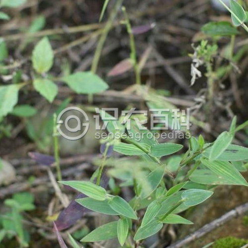 稈堅硬,直立或基部傾斜,具分枝,高60-120厘米。葉鞘質硬,短于節間,邊緣被纖毛;葉舌極短,為一圈毛;葉片披針形,長5-12厘米,寬1-2.5厘米,頂端漸尖,基部心形,無毛或疏生柔毛,邊緣粗糙,近基部常具疣基毛,脈間具橫脈,有時主脈偏斜,在下面明顯。圓錐花序開展,長10-23厘米,分枝纖細,下部裸露,上部疏生小穗;小穗橢圓形,綠色,后變淡紫色,長2.3-2.5毫米,無毛或貼生微毛,具長柄;第一穎闊卵形至卵狀橢圓形,幾與小穗等長,具5脈,頂端尖;第一外稃與第二穎同形,具5脈,其內稃缺;第二外稃革質,平滑、光亮,具脊,橢圓形,頂端尖略短于小穗,灰綠色至褐色。鱗被長約0.35毫米,寬約0.26毫米,具5脈;局部折疊,透明;花果期5-11月。