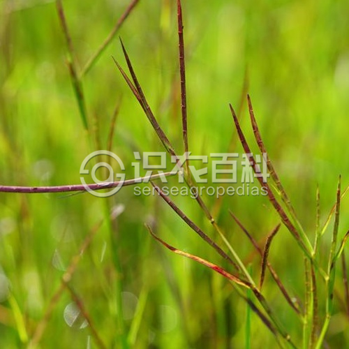 具橫走的根莖;根莖具分枝,節上生不定根及鱗片。稈直立部分高20-40厘米,直徑1-2毫米,質稍硬,鞘口及葉舌具纖毛;葉片線形,長可達10厘米,寬3-4毫米,兩面無毛。總狀花序長5-10毫米,直徑約1.5毫米,略扁,光滑無毛。無柄小穗陷入總狀花序軸凹穴中,長卵形,長4-5毫米;第一穎近革質,等長于小穗,背面扁平,具5-9脈,兩側具脊,先端急尖或稍鈍;第二穎紙質。略短于第一穎,完全與總狀花序軸的凹穴愈合;第一小花僅存外稃;第二小花兩性,外稃透明膜質,長約4毫米;內稃長約為外稃的2/3,頂端圓鈍,無脈。有柄小穗披針形,等長或稍長于無柄小穗;第一穎草質,卵狀披針形,先端尖或鈍,兩側具脊;第二穎舟形,先端漸尖,完全與總狀花序軸的凹穴愈合;第一小花中性,僅存膜質外稃,長約3.5毫米;第二小花兩性,內外稃均為透明膜質;雄蕊3枚,花藥長約2毫米。穎果長卵形,長約2毫米。花果期夏秋季。