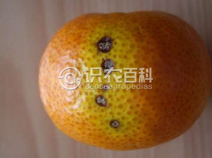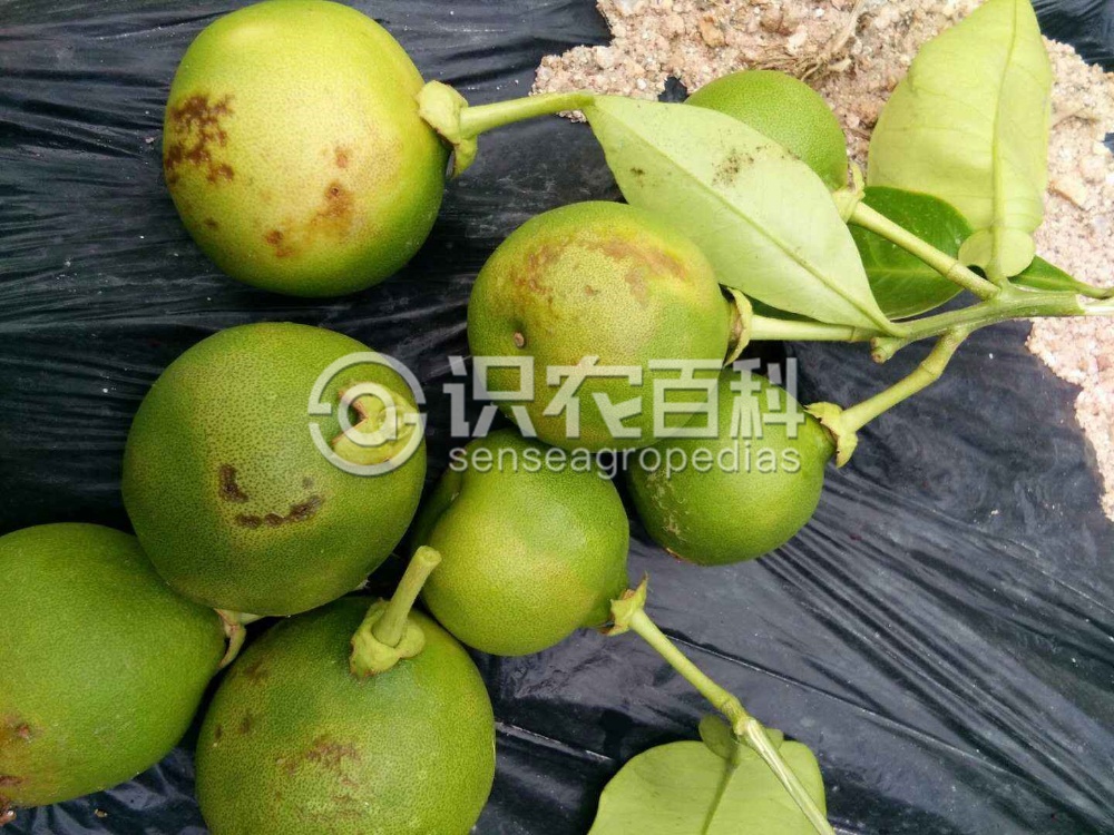 柑橘黑斑病又名黑星病、炭腐病。主要為害柑橘的果實、葉片和枝梢,以果實受害最重。黑斑病主要表現出兩種癥狀:一是黑斑型,在果面上初呈淡黃色或橙色的斑點,后擴大成圓形或不規則形的黑色或黑褐色大病斑。嚴重時,多個病斑聯合,甚至擴大到整個果面。貯藏期的病果腐爛后瓤囊僵化,呈黑色。二是黑星型,在近成熟的果面出現紅褐色的圓形小斑,擴大后呈紅褐色至黑褐色,后期邊緣稍隆起,紅褐色至黑色,中間灰褐色至灰白色,略凹陷,其上生有少量小黑粒點的分生孢子器。一個果上可發生數個至數十個病斑,常導致落果。在貯運期間,病害會繼續發生,引致全果腐爛。枝梢和葉片也能受害,其癥狀與果實的相似。