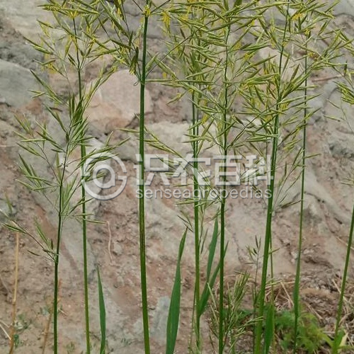 具橫走根狀莖。稈直立,疏叢生,高50-120厘米,無毛或節(jié)下具倒毛。葉鞘閉合,無毛或有短毛;葉舌長1-2毫米;葉片扁平,長20-30厘米,寬4-8毫米,先端漸尖,兩面與邊緣粗糙,無毛或邊緣疏生纖毛。圓錐花序長10-20厘米,較密集,花后開展;分枝長達10厘米,微粗糙,著生2-6枚小穗,3-5枚輪生于主軸各節(jié);小穗含6-12花,長15-25毫米;小穗軸節(jié)間長2-3毫米,生小刺毛;穎披針,具膜質(zhì)邊緣,第一穎長4-7毫米,具1脈,第二穎長6-10毫米,具3脈;外稃長圓狀披針形,長8-12毫米,具5-7脈,無毛,基部微粗糙,頂端無芒,鈍或淺凹缺;內(nèi)稃膜質(zhì),短于其外稃,脊具纖毛;花藥長3-4毫米。穎果長圓形,褐色,長7-9毫米。花果期7-9月。