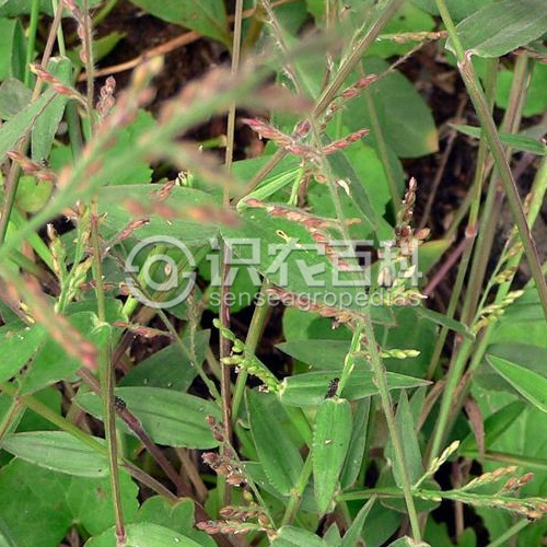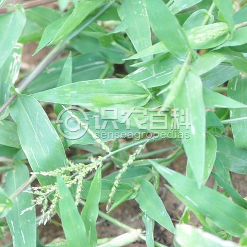 稈高10-40厘米,基部傾斜,全體密被柔毛。葉鞘被柔毛,尤以鞘口及邊緣更密;葉舌小,具長約1毫米纖毛;葉片卵狀披針形,長1-4厘米,寬3-10毫米,兩面密被柔毛,先端急尖,邊緣呈波狀皺折,基部鈍圓。圓錐花序由4-8枚總狀花序組成;總狀花序長1-3厘米;主軸與穗軸密生柔毛;小穗卵形,長約2.5毫米,常被短柔毛或無毛,通常單生;小穗柄長0.5-1毫米,有毛;第一穎長為小穗之半,具3脈;第二穎等長或略短于小穗,具5脈;第一小花中性,其外稃與小穗等長,具5脈,內稃膜質,狹窄;第二外稃革質,稍包卷同質內稃,具橫細皺紋;鱗被2,膜質,折疊,長約0.4毫米;花柱基分離。花果期7-10月。