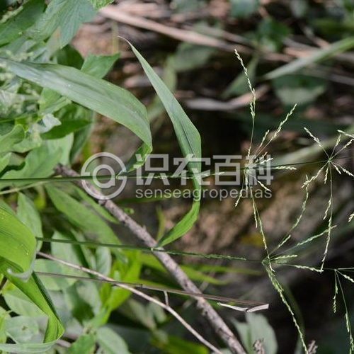 須根細弱。稈直立,質地柔軟,高20-70厘米,基部有橫臥或斜升的長匍匐莖,于節處生根。葉鞘閉合達中部,松弛,光滑,上部者短于節間;葉舌透明膜質,頂端鈍圓,長2-5毫米;葉片柔軟,扁平,長5-20厘米,寬4-8毫米,兩面光滑無毛,頂端呈舟形。圓錐花序開展,長10-30厘米,寬4-12厘米;分枝細長,斜升或稀與主軸垂直,在基部各節多成半輪生,主枝長2-6厘米,基部裸露,或具排列稀疏的小穗;小穗柄長于0.5毫米;小穗綠色、褐綠色或褐紫色,含