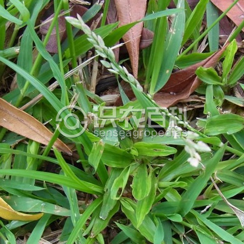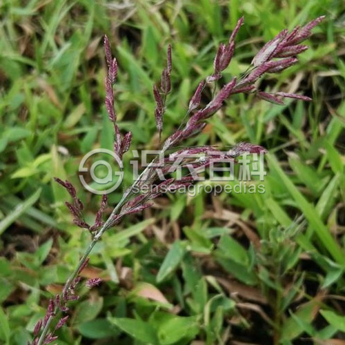 稈直立或下部膝曲,具匍匐枝,通常3-5節,高20-60厘米,徑2-3毫米。葉鞘松裹莖,光滑無毛,鞘口具長毛;葉舌極短,長約0.8毫米,膜質,葉片平展,近披針形,先端漸尖,長2-20厘米,寬3-6毫米,上面疏生長毛,下面光滑。圓錐花序開展,長圓形,長5-20厘米,寬3-5厘米,每節一個分枝,腋間無毛;小穗柄長0.2-1厘米;小穗長圓形或錐形,長5-10毫米,寬2-4毫米,含小花10-20朵;小花密接而覆瓦狀排列,成熟時開展并呈紫色;小穗軸宿存;穎披針形,先端尖,具1脈,第一穎長1.5-2毫米,第二穎長2-2.5毫米;第一外稃長約2毫米,廣卵圓形,側脈明顯隆起,并密生細點,先端急尖;內稃稍短于外稃,長約1.8毫米,具2脊,脊上有纖毛,成熟時與外稃同時脫落;雄蕊2枚,花藥紫,長約0.5毫米。穎果橢圓形,長約0.8毫米。花果期8-10月。