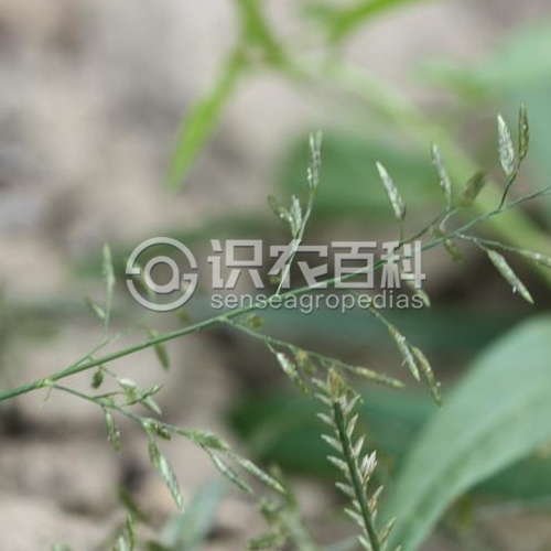 稈單生或叢生,基部膝曲,高15-45毫米,徑1-2.5毫米,具3-4節,在基部二、三節處常有分枝。葉鞘壓扁,無毛,鞘口有長柔毛,成熟后往往脫落;葉舌為一圈纖毛,長約0.5毫米;葉片多內卷或對折,長6-12厘米,寬2-3毫米,上部葉有時超出花序長度。圓錐花序開展或緊縮,長6-15厘米,寬3-5厘米,分枝常簇生、輪生或單生,分枝腋間通常無毛;小穗柄長1-5毫米,緊貼小枝;小穗長3-5毫米,寬約2毫米,有3-10小花,灰綠色;穎披針形,具1脈,第一穎長約1.5毫米,第二穎長約2毫米;第一外稃長約2毫米,具3脈,廣卵圓形,先端尖;內稃長約1.5毫米,具2脊,脊上有纖毛,遲落或縮存。雄蕊3枚,花藥長約0.5毫米。穎果紅褐色,橢圓形,長約1毫米。花果期7-11月。