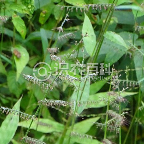 稈較纖細,基部平臥地面,節著地生根,上升部分高20-80厘米。葉鞘短于或上部者長于節間,近無毛或疏生毛;葉片披針形至卵狀披針形,基部多少包莖而不對稱,長3-8厘米,寬5-20毫米,近無毛或邊緣疏生纖毛,具橫脈。圓錐花序長5-15厘米,主軸無毛或疏生毛;分枝互生而疏離,長2-6厘米;小穗孿生(有時其中1個小穗退化)稀上部者單生,長約3毫米;穎草質,近等長,長約為小穗的1/2-2/3,邊緣常被纖毛,第一穎先端芒長0.7-2厘米;第二穎頂端的芒長1-2毫米;第一小花中性,外稃革質,與小穗等長,先端具芒尖,具7-9脈,內稃膜質,狹小或缺;第二外稃革質,平滑,光亮,長約2.5毫米,邊緣內卷,包著同質的內稃;鱗片2,薄膜質,折疊;花柱基部分離?;ü?-11月。