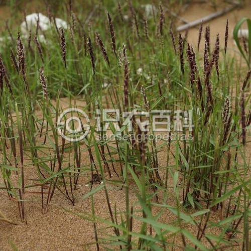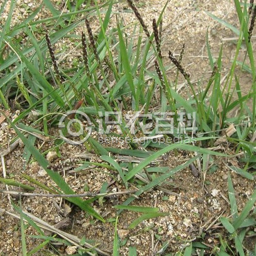 具橫走根莖,須根細弱。稈直立,高15-20厘米,基部常有宿存枯萎的葉鞘。葉鞘無毛,下部者松弛而互相跨覆,上部者緊密裹莖;葉舌纖毛狀,長約1.5毫米;葉片扁平或稍內卷,長2.5-5厘米,寬2-4毫米,表面疏生柔毛,背面近無毛。總狀花序呈穗狀,長2-4厘米,寬3-5毫米;小穗柄通常彎曲,長可達5毫米;小穗長2.5-3.5毫米,寬1-1.5毫米,卵形,淡黃綠色或帶紫褐色,第一穎退化,第二穎質硬,略有光澤,具1脈,頂端鈍頭或漸尖,于近頂端處由背部中脈延伸成小刺芒;外稃膜質,長圓形,長2.5-3毫米;雄蕊3枚,花絲短,花藥長約1.5毫米;花柱2,柱頭帚狀,開花時伸出稃體外。穎果卵形,長1.5-2毫米。花果期5-8月。