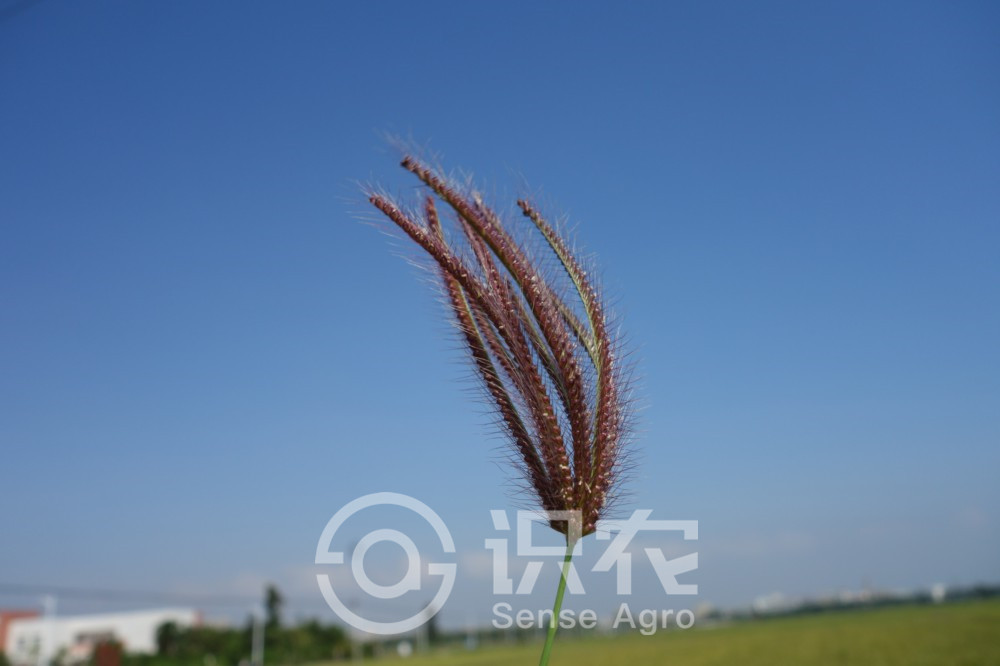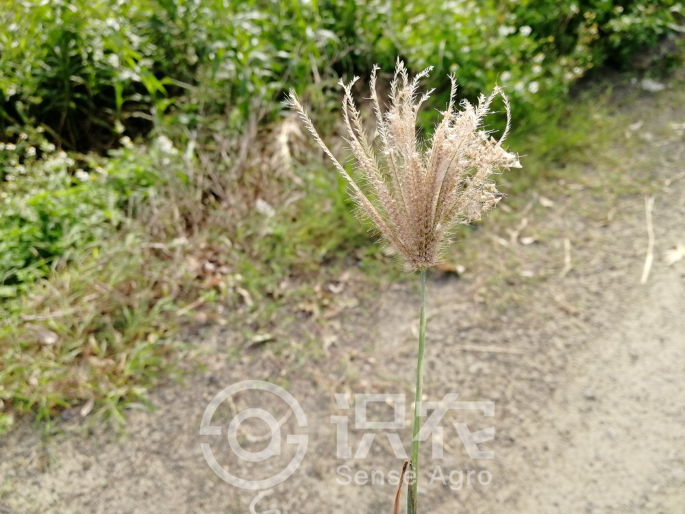 稈直立或基部膝曲,高12-75厘米,徑1-4毫米,光滑無毛。葉鞘背部具脊,包卷松弛,無毛;葉舌長約1毫米,無毛或具纖毛;葉片線形,長3-25厘米,寬3-6毫米,兩面無毛或邊緣及上面粗糙。穗狀花序5至10余枚,長1.5-5厘米,指狀著生于稈頂,常直立而并攏成毛刷狀,有時包藏于頂葉之膨脹葉鞘中,成熟時常帶紫色;小穗無柄,長約3毫米;穎膜質,1脈;第一穎長約1.8毫米,第二穎等長或略短于小穗,中脈延伸成長0.5-1毫米的小尖頭;第一小花兩性,外稃紙質,兩側壓扁,呈倒卵狀披針形,長2.8-3毫米,3脈,沿脈及邊緣被疏柔毛或無毛,兩側邊緣上部1/3處有長2-3毫米的白色柔毛,頂端尖或有時具2微齒,芒自背部頂端稍下方伸出,長5-15毫米;內稃膜質,略短于外稃,具2脊,脊上被微毛;基盤具長約0.5毫米的毛;第二小花不孕,長楔形,僅存外稃,長約1.5毫米,頂端截平或略凹,芒長4-8毫米,自背部邊緣稍下方伸出。穎果紡錘形,淡黃色,光滑無毛而半透明,胚長約為穎果的2/3。花果期6-10月。