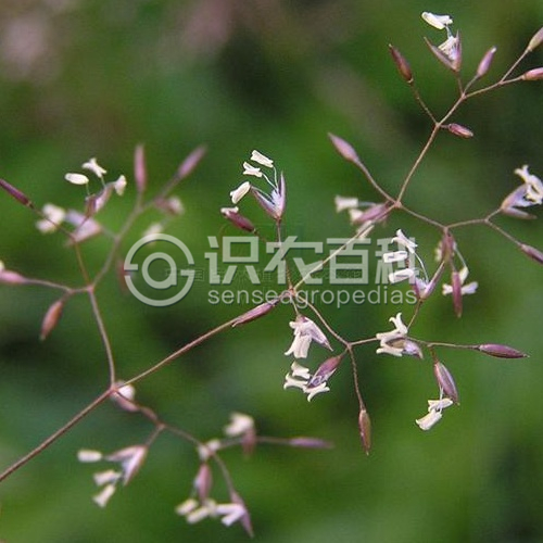 高30-35厘米,具根狀莖或短縮的根莖頭。稈細弱,叢生,基部微有膝曲,直徑約0.8毫米,具4-5節。葉鞘通常超過節間,表面平滑;葉舌膜質,長2-3.5毫米,先端近圓鈍,破裂;葉片窄披針形,長4-5厘米,寬2-3.5毫米,兩面粗糙,先端急尖。圓錐花序長橢圓形或較狹窄,長約6厘米,寬1-3厘米,分枝上舉,稍粗糙,長約1.5厘米,每節具2-3枚;小穗黃綠色,穗梗粗糙;穎片披針形,兩穎近等長,第一穎長1.8-2毫米,脊上微粗糙;外稃與穎近等長,膜質,無芒;基盤無毛;內稃長為外稃之半;花藥狹線形,長0.8-1毫米。花期8月。