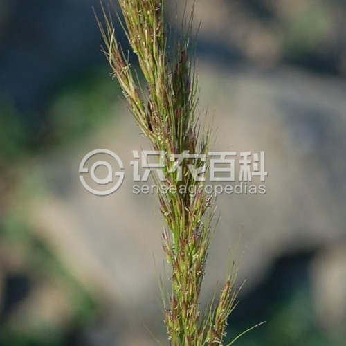 須根柔韌。稈直立,少數叢生,平滑,高60-100厘米,徑2.5-3.5毫米,通常具3-4節,節下貼生微毛,基部具鱗芽。葉鞘稍粗糙,上部者短于節間,葉鞘口具微毛;葉舌厚膜質,長約1毫米,頂端平截或具裂齒;葉片質地較硬,直立,邊緣常卷折,上面及邊緣粗糙,莖生者長8-15厘米,基生者長達30厘米,寬2-10毫米。圓錐花序緊密呈穗狀,長10-25厘米,寬1-2.5厘米;小穗長5-6毫米,灰綠色或基部帶紫色,成熟后變褐銅色,穎膜質,幾等長,先端尖常破裂,微粗糙,具3脈;外稃長約4毫米,背部密被柔毛,頂端具2微齒,具3脈,脈于頂端匯合且延伸成芒,芒長10-13毫米,一回膝曲,芒柱稍扭轉且被微短毛,基盤鈍,具短毛,長約0.5毫米;內稃具2脈,脈間被柔毛;花藥長約2毫米,頂端具毫毛。穎果圓柱形,長約3毫米。花果期7-9月。