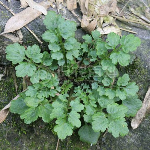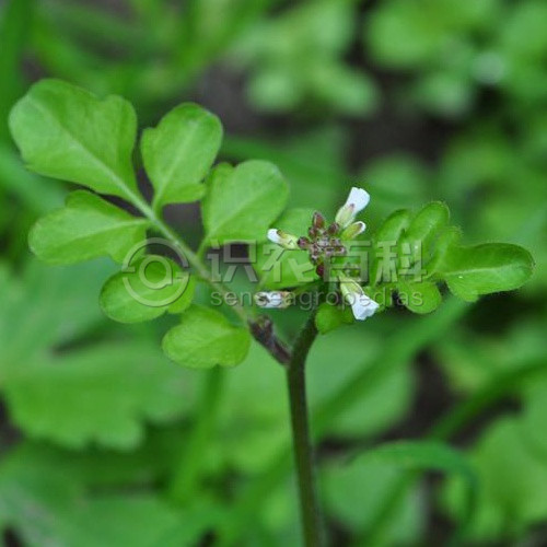 高15-35厘米。莖直立或斜升,分枝或不分枝,下部有時淡紫色,被較密柔毛,上部毛漸少。基生葉具葉柄,有小葉2-5對,頂生小葉腎形或腎圓形,長4-10毫米,寬5-13毫米,邊緣有3-5圓齒,小葉柄明顯,側生小葉卵形或圓形,較頂生的形小,基部楔形而兩側稍歪斜,邊緣有2-3圓齒,有或無小葉柄;莖生葉具短柄,有小葉3-6對,生于莖下部的與基生葉相似,生于莖上部的頂生小葉菱狀長卵形,頂端3齒裂,側生小葉長卵形至線形,多數全緣;全部小葉兩面稍有毛。總狀花序生于枝頂,花小,直徑約3毫米,花梗纖細,長2.5-4毫米;萼片綠色或淡紫色,長橢圓形,長約2毫米,邊緣膜質,外面有疏毛;花瓣白色,倒卵形,長3-5毫米,頂端鈍,向基部漸狹;花絲稍擴大;雌蕊柱狀,花柱極短,柱頭扁球形。長角果線形,稍扁,無毛,長達30毫米;果梗纖細,直立開展,長4-12毫米。種子橢圓形,寬約1毫米,頂端有的具明顯的翅。花期2-4月,果期4-6月。