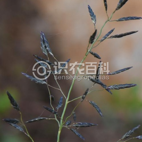 稈叢生,直立或基部稍膝曲,高30-60厘米,徑約1.5-2.5毫米,基部常壓扁,具2-3節(jié)。葉鞘松裹莖,長于或短于節(jié)間,兩側(cè)邊緣有時(shí)具長纖毛,鞘口有白色柔毛,長0.2-0.5毫米;葉舌長約0.5毫米;葉片線形,扁平,長2-25厘米,寬3-5毫米,無毛。圓錐花序開展,長10-2.3厘米,寬3-7厘米,分枝單生或輪生,纖細(xì),曲折,腋間無毛;小穗柄長2-10毫米,小穗長3-5毫米,寬1-1.5毫米,黑色或墨綠色,含3-8小花;穎披針形,先端漸尖,膜質(zhì),具1脈,第二穎或具3脈,第一穎長約1.5毫米,第二穎長1.8-2毫米;外稃長卵圓形,先端為膜質(zhì),具3脈,第一外稃長約2.2毫米;內(nèi)稃稍短于外稃,彎曲,脊上有短纖毛,先端圓鈍,宿存。雄蕊3枚,花藥長約0.6毫米。穎果橢圓形,長為1毫米。花果期4-9月。