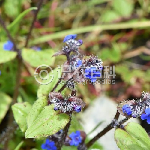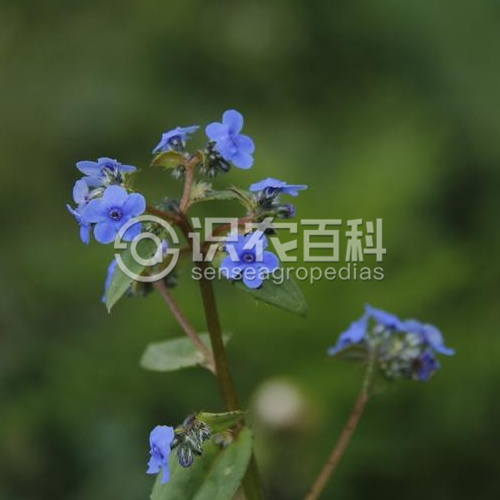 莖高6-65厘米,直立或漸升,常自基部起有長或短的分枝,或不分枝,被剛毛,有時還混生稀疏糙伏毛。基生葉和莖下部葉具長柄,卵形、狹卵形至寬披針形,長4-12厘米,寬0.7-4.4厘米,頂端急尖、漸尖,稀鈍,基部圓形或寬楔形,中部以上葉漸變小,具短柄至無柄,狹卵形或寬披針形,基部漸狹,邊緣全緣,兩面有短伏毛,下面沿中脈有剛毛,上面還散生帶基盤的剛毛。花序密集,直徑0.5-1.5厘米,有時稍伸長,長約達2厘米,生莖頂端及無葉的分枝頂端,基部苞片葉狀,其他苞片小,長0.5-2毫米;花梗短,密被短糙伏毛;花萼長約2毫米,果期長達3.5毫米,5裂近基部,裂片線形或狹三角形,外面疏被短柔毛和長糙毛,邊緣密被短柔毛,內面有短伏毛;花冠藍色或藍紫色,檐部直徑5-9(-11)毫米,無毛,裂片近圓形,筒部長2.5-3.8(-4)毫米,無毛,附屬物低梯形或半月形,長約0.3毫米,無毛或有短毛。小堅果卵形,長2-2.5毫米,寬約1.8毫米,有小瘤狀突起和短毛,背孔位于背面中上部,狹長圓形,長1-1.5毫米,著生面位腹面中央。5-9月開花。