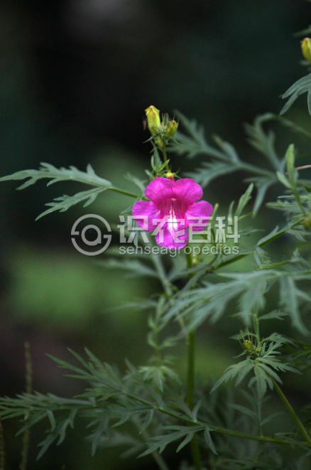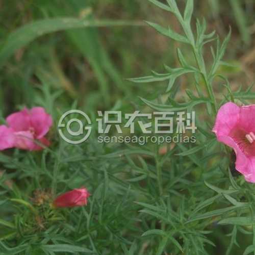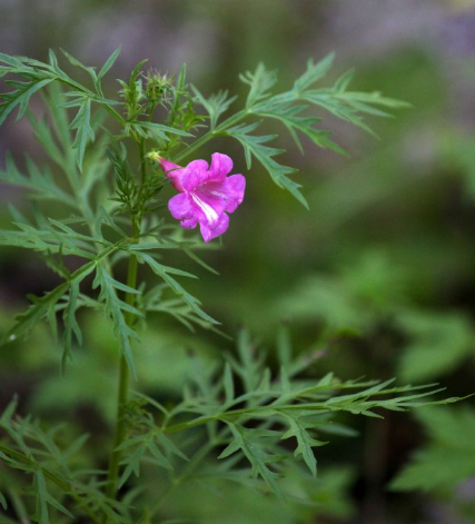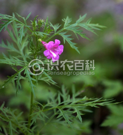 一年生至多年生草本,具分枝的莖,高達80厘米;根近木質而分枝。葉互生,不聚生于莖的基部,2-3回羽狀細裂,形態多變異,長4-6厘米,小葉不規則細裂,末回裂片線狀披針形,具細齒或全緣。頂生總狀花序,疏散,長達20厘米;花梗長1-5毫米;小苞片綠色,線形,長3-5毫米?;ㄝ噻姞?,綠色帶紫紅色,長和寬均約5毫米,萼齒鉆狀,萼齒間皺褶2淺裂?;ü诘倒迳蚍奂t色,有時帶紫色,鐘狀漏斗形,基部收縮成細筒,長約4厘米,直徑粗2.5厘米,花冠裂片圓形。雄蕊4,2強,著生于花冠筒近基部,花藥成對靠合。花柱淡黃色。蒴果淡綠色,細圓柱形,頂端尾狀漸尖,長3.5-5.5(-10)厘米,粗約5毫米。種子扁圓形,細小,直徑約2毫米,四周具透明的膜質翅,頂端具缺刻?;ㄆ?-9月,果期10-11月。