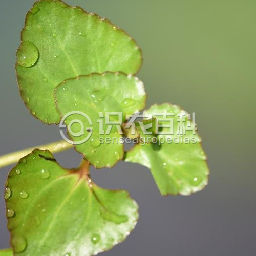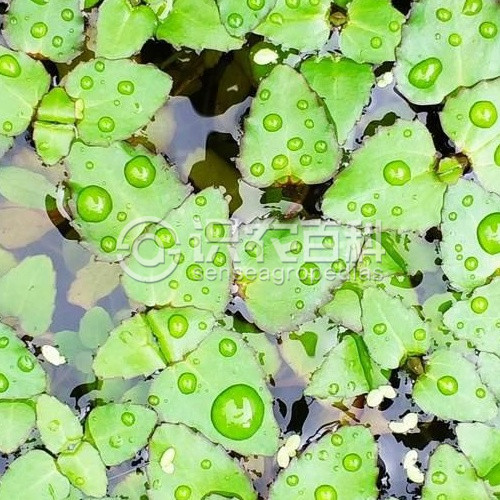根狀莖橫走。莖綠色,長達(dá)60厘米。葉對生,表面無毛,背面淡紫紅色;沉水葉三角狀圓形至心形,長1.5-3厘米,寬2.2-3.5厘米,頂端鈍尖,基部呈淺心形;葉柄長1.5厘米。花單生于葉腋內(nèi),在莖上部葉腋多為閉鎖花;花梗長1-3厘米,花后增長。萼齒5,長約2毫米,宿存。花冠漏斗狀,淡紅色,長2-3厘米,直徑2-3.5厘米,裂片5,圓形,薄膜質(zhì),具細(xì)脈紋。雄蕊2,內(nèi)藏,花絲長約1厘米,藥室2,極叉開,縱裂。子房下位,2室,上室退化,下室有胚珠2顆。蒴果狹長,不開裂,有種子一顆,頂端有銳尖、3長2短的鉤狀附屬物,其中3枚長的附屬物可達(dá)7厘米,頂端卷曲成鉤狀,2根短的長0.5-2厘米。花期6月。