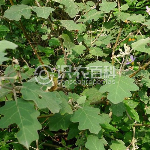 (11)分枝的星狀短絨毛,下面灰綠,密被星狀長絨毛;中脈及側脈常在兩面具有長2-6毫米的鉆形皮刺,側脈每邊3-4條;葉柄長2-4厘米,密被星狀毛及具1-2枚鉆形皮刺,有時不具。蝎尾狀花序腋外生,長約3.5-6厘米,總花梗長2-8毫米,花梗長1.5厘米或稍長,密被星狀絨毛及鉆形細直刺;花藍紫色,或少為白色,直徑約2厘米;萼杯狀,直徑約1厘米,長約4-6毫米,先端5裂,裂片卵形,端尖,外面密被星狀絨毛及細直刺,內面僅先端被星狀毛;花冠輻狀,筒部長約1.5毫米,隱于萼內,冠檐長約1.3厘米,先端深5裂,裂片卵形,長約8毫米,外面密被分枝多具柄或無柄的星狀絨毛,內面上部及中脈疏被分枝少無柄的星狀絨毛,很少有與外面相同的星狀毛;花絲長約1毫米,基部稍寬大,花藥黃色,長約為花絲長度的7倍,頂孔向上;子房長圓形,具棱,頂端被星狀絨毛,花柱絲狀,長約名毫米,除柱頭以下1毫米外余均被星狀絨毛,柱頭截形。果序長約4-7厘米,果柄長1-1.2厘米,被星狀毛及直刺。漿果球形,光亮,成熟時橙紅色,直徑約1厘米,宿存萼反卷。種子淡黃色,近盤狀,直徑約2毫米。全年開花結果。